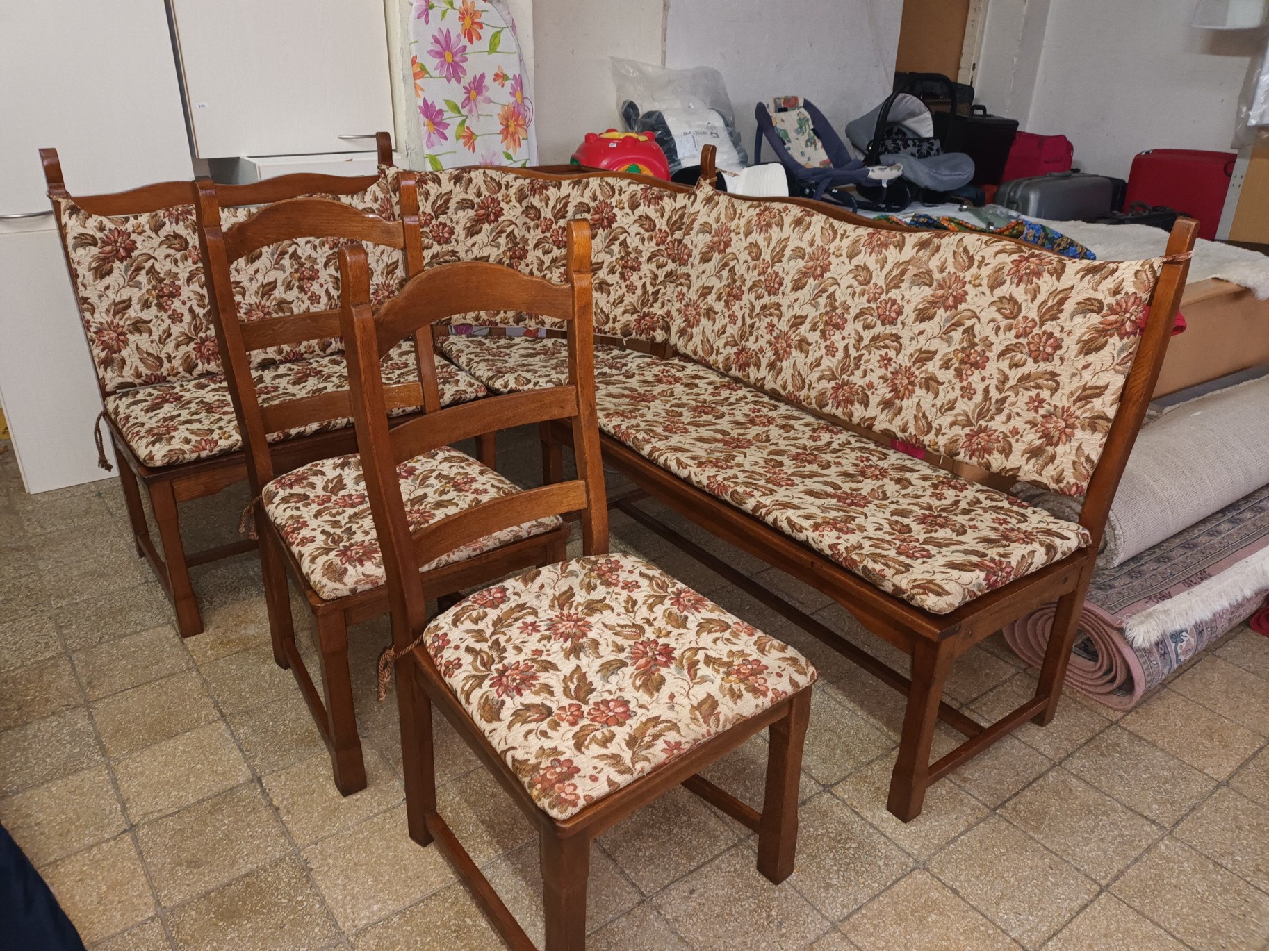 Rohová lavice a dvě židle.1690 Kč.