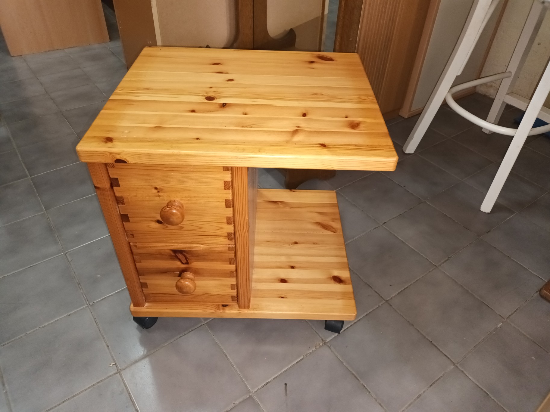 Stolek z masivu,na kolečkách.490 Kč.